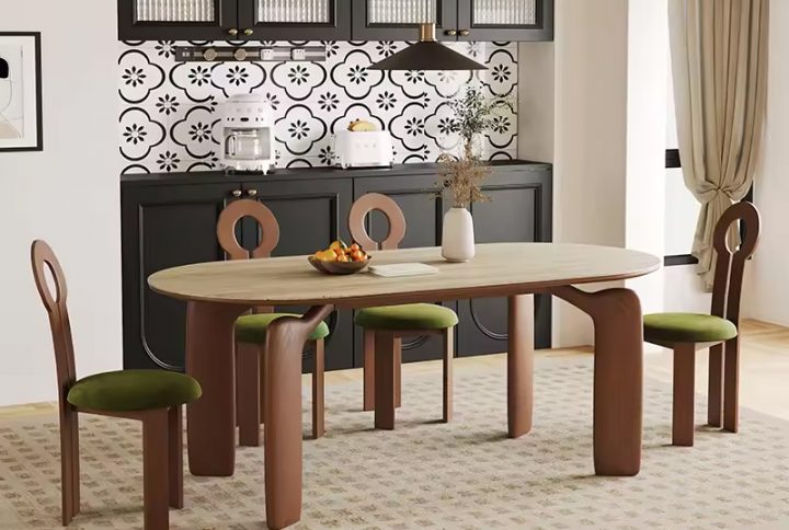 Be the first to review “Modern French Retro Oval Wooden Legs Base Dining Table Set 6 Seater stone Slate Walnut Restaurant 8 Chairs For Kitchen Furniture”