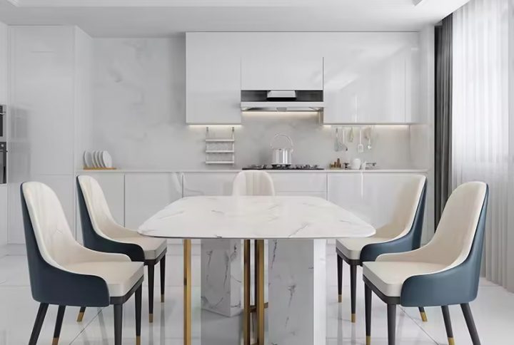 Modern furniture white ash wood Stone Slate Top dining table set with 4/6 chairs for dining room furniture