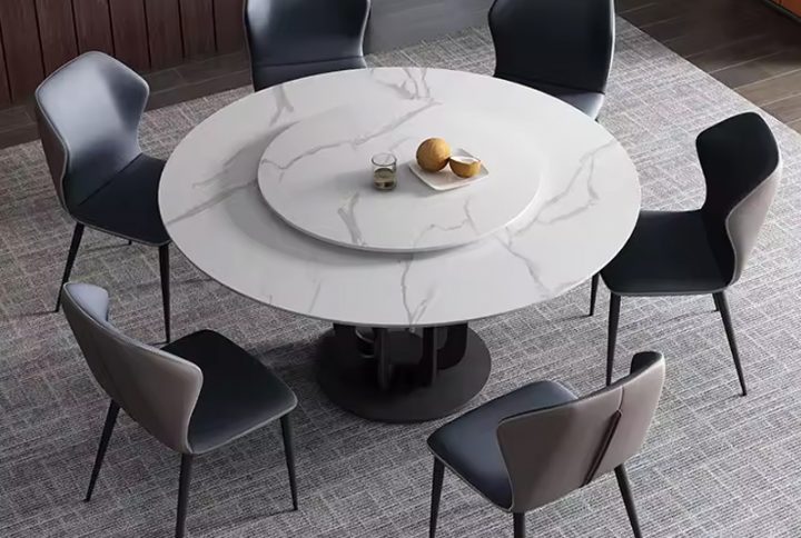 Modern solid wooden frame marble top round dining table with turntable for dining room furniture