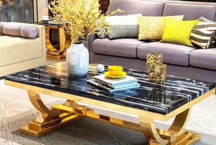 Be the first to review “New design luxury living room round coffee table with gold stainless steel frame modern sofa center table set”