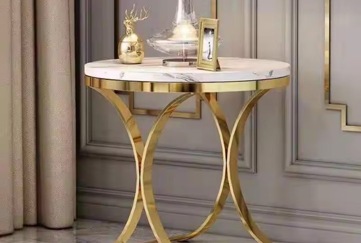 Stainless steel titanium gold marble surface round coffee table sets luxury sofa side table furniture