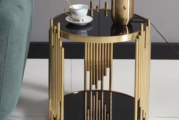 Top Quality Industrial Round Coffee Table With 2-Layer Leather Coffee Table and pulley wheel leg for living room furniture