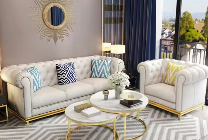 Unique Modern Home Office Hotel Living Room Furniture Couch fabric velvet Chesterfield Sofa set
