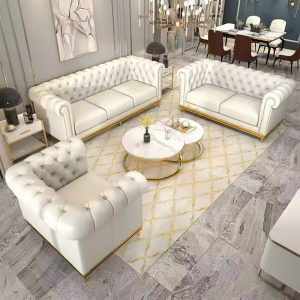 2024 Light luxury leather sofa modern living room design chesterfield sofa set furniture for home hotel office